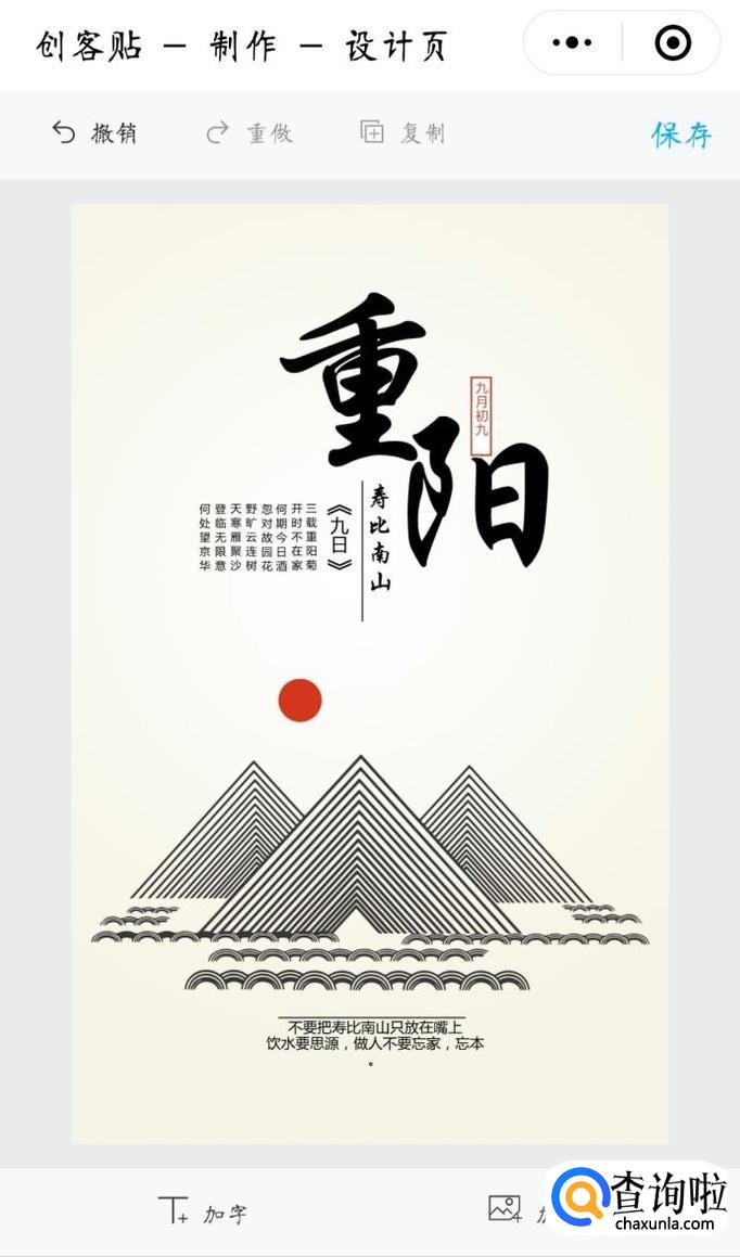 最后按照提示的步骤就可以很容易制作出心仪的海报,最后点击保存。