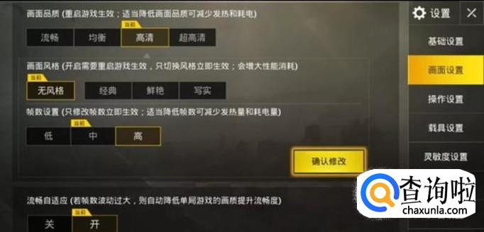 最后点击画面设置,将帧数设置改为高,并点击确认修改,就完成了。