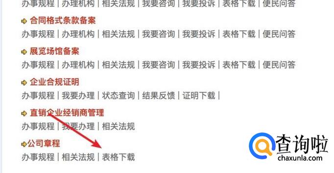 打开后,在页面下方找到公司章程的表格下载链接,点击打开它。