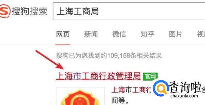 打开搜狗搜索,输入‘上海工商局’进行查询。然后点击打开官方网站。