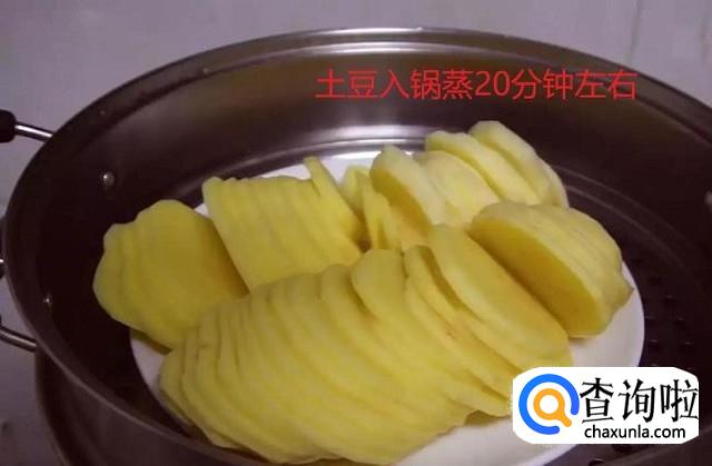 接下来将土豆片放在蒸锅里蒸20分钟左右,如下图所示