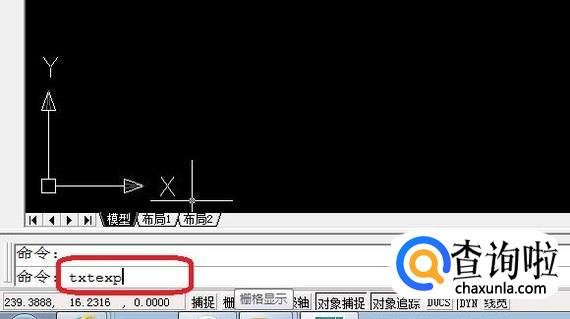 命令栏输入“txtexp”命令,按回车键。