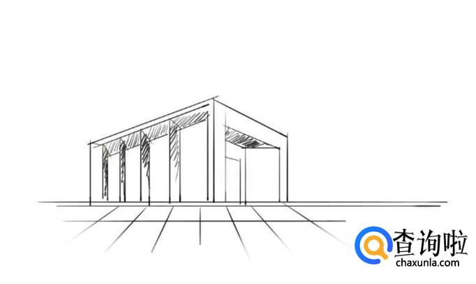 首先我们可以将建筑的外轮廓勾画出了,不需要做过多的细节刻画。