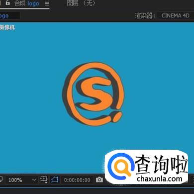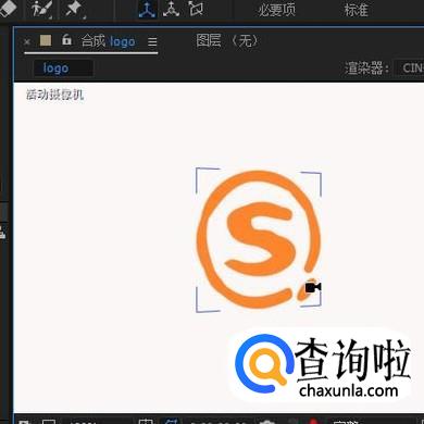 摄像机图层在选中的状态下,按下键盘的C键,鼠标点住节目窗口中的logo,移动,使logo如下图所示的效果。
