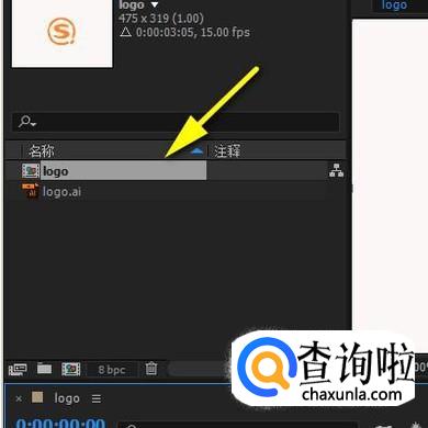 鼠标点住这AI文件,拖到新建合成的按钮这里,创建一个logo合成。