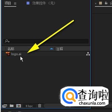 打开AE软件,进入到软件的操作界面,把logo.ai文件拖入到软件的文件面板中。