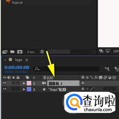 随即,自动新建了一个logo轮廓层。我们把AI矢量层删除掉。接着,再新建一个摄像机图层。