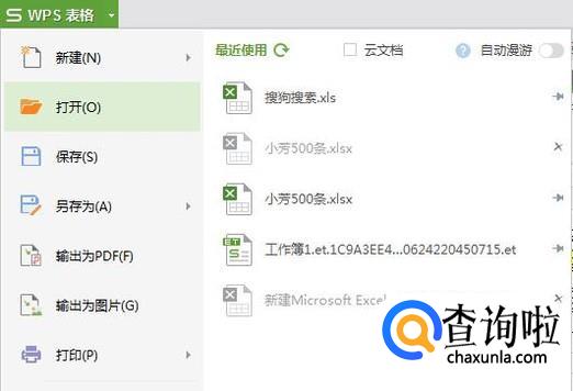 这样我们就可以查看到我们最近使用和打开过的表格了。
