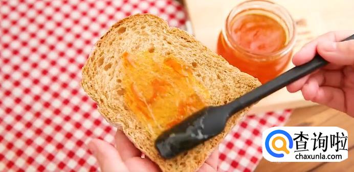 烤两片面包,将果酱涂在面包上,做成果酱三明治,或是取几勺果酱用温水化开,然后加入一瓶乳酸菌饮料,再放上冰块,就变成超好喝的橙子益菌多了。