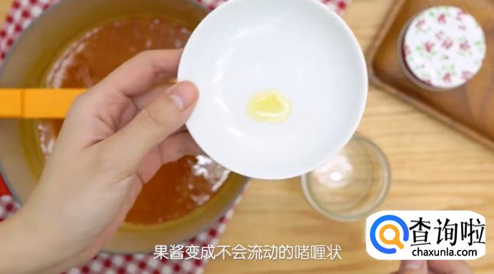 煮好之后,取几滴果酱冷藏2分钟,观察果酱是否变成不会流动的啫喱状,如果是的话,即可食用了。