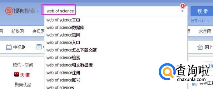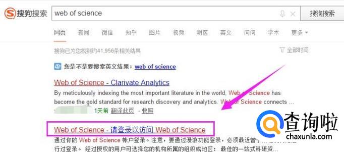 我们在浏览器上输入“web of science”,如图。