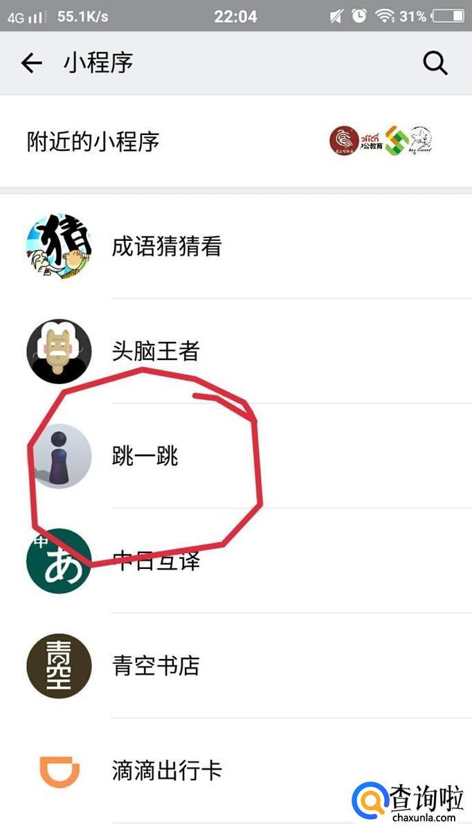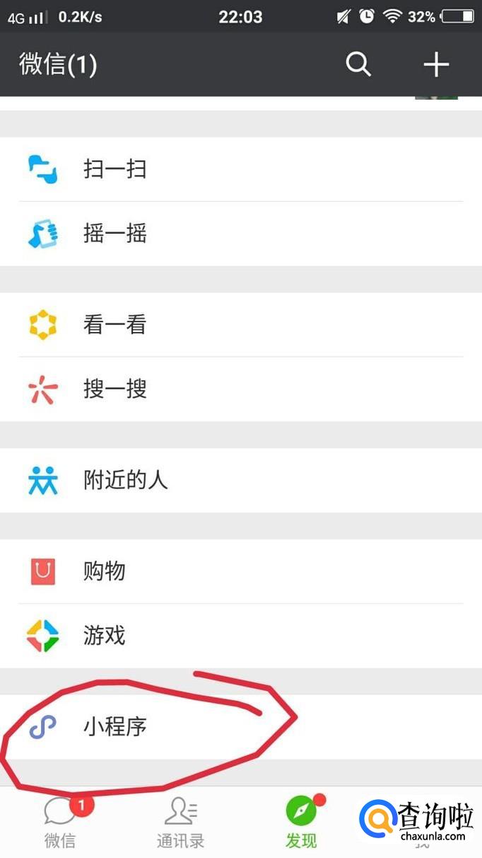 还可以在刚刚的发现页面点击【小程序】,然后可以在小程序中找到跳一跳,如图