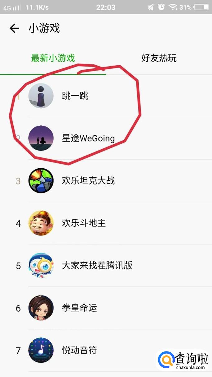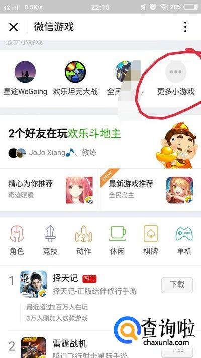 然后在游戏页面点击【更多小游戏】,然后就找到跳一跳啦,如图