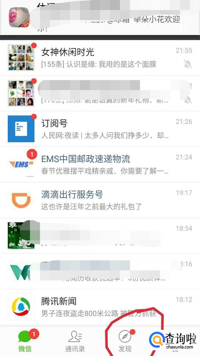 然后还可以在微信页面点击【发现】,如图