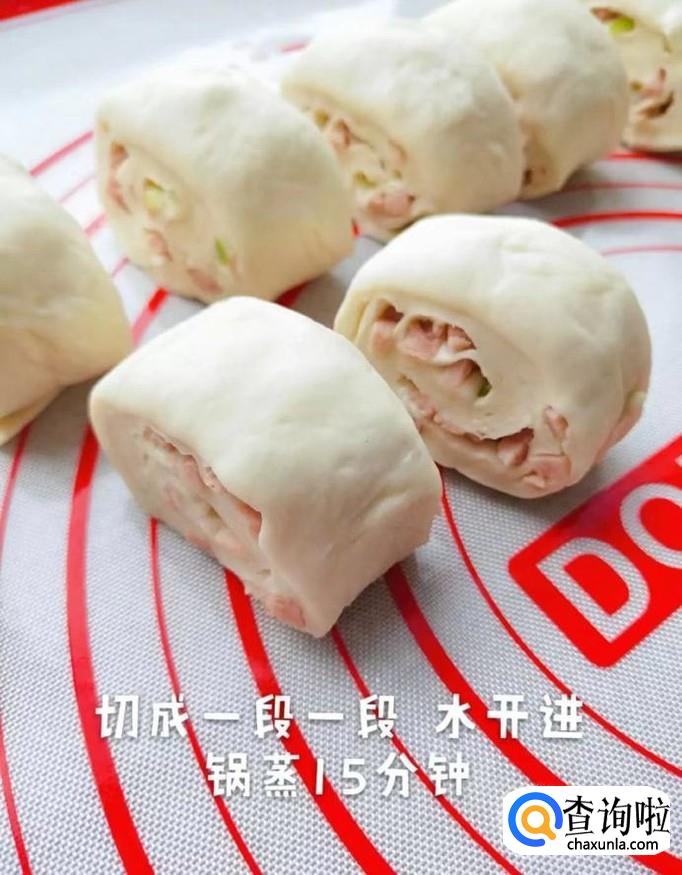 食材:白面,酵母,火腿肠,葱花,食用盐。