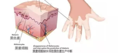 白癜风是一种常见的后天性限局性或泛发性皮肤色素脱失病。性别无明显差异,各年龄组均可发病,但以青少年好发。皮损为色素脱失斑,常为乳白色,也可为浅粉色,表面光滑无皮疹。白斑境界清楚,边缘色素较正常皮肤增加,白斑内毛发正常或变白。病变好发于受阳光照射及磨擦损伤部位,病损多对称分布。白斑还常按神经节段分布而呈带状排列。除皮肤损害外,口唇、阴唇、龟头及包皮内侧黏膜也常受累。