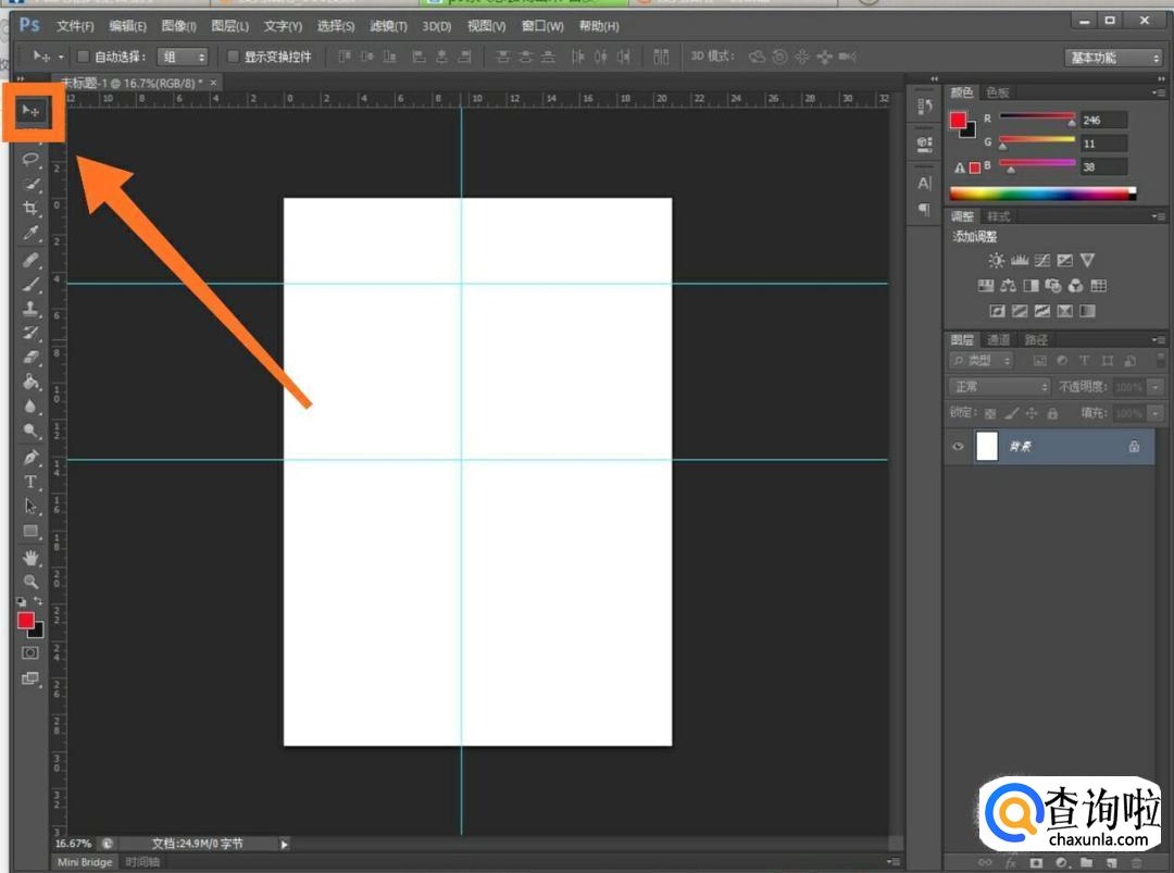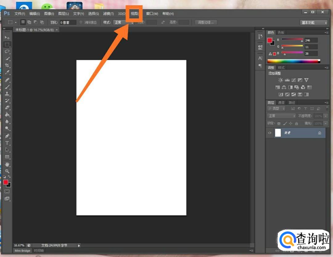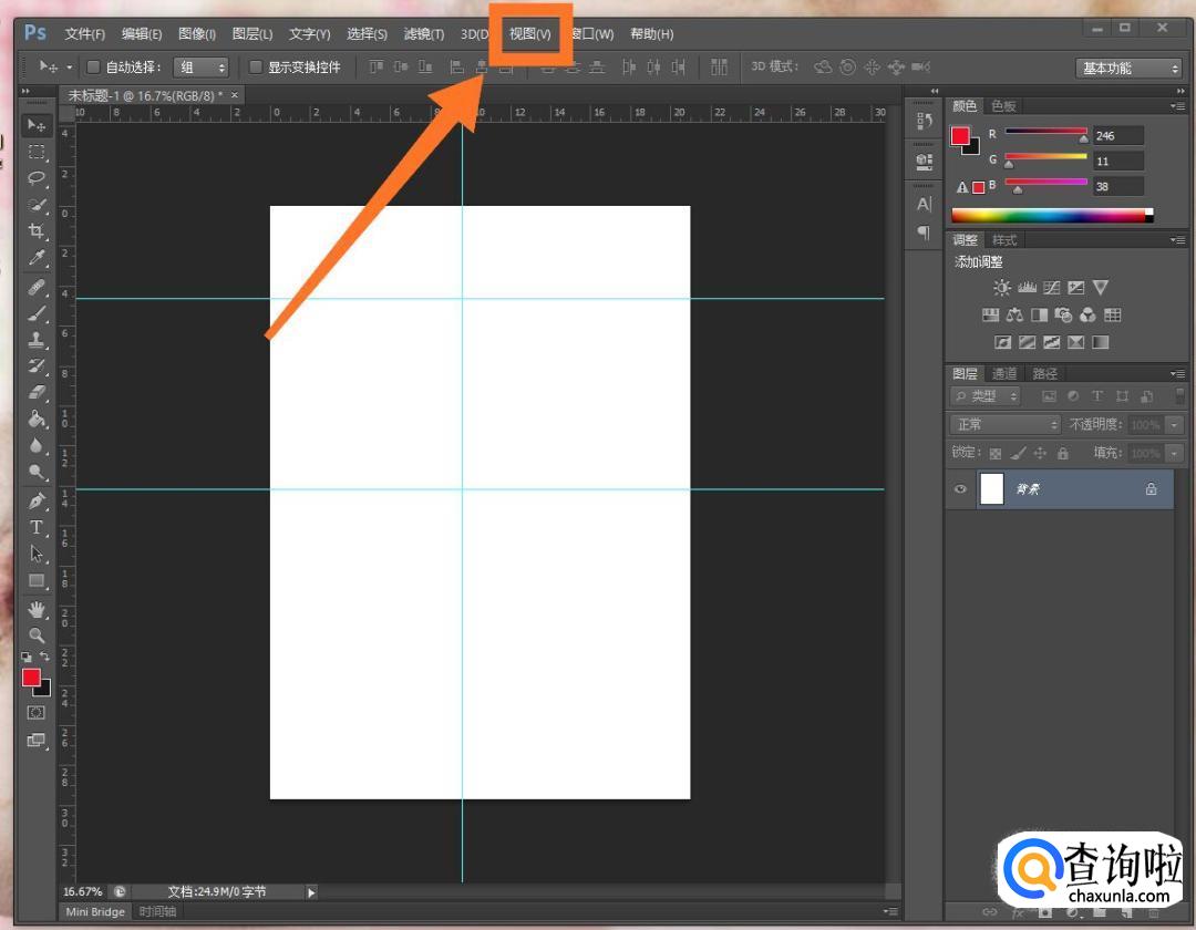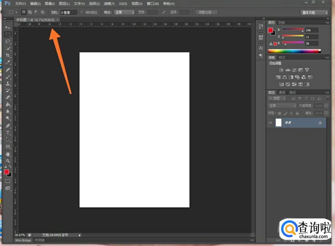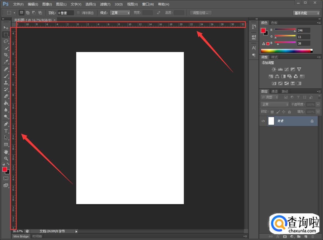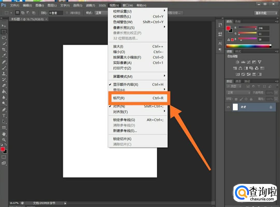 这时我们就可以就可以点击标尺;或者按快捷键Ctrl+R,这两种方法都可以打开标尺。