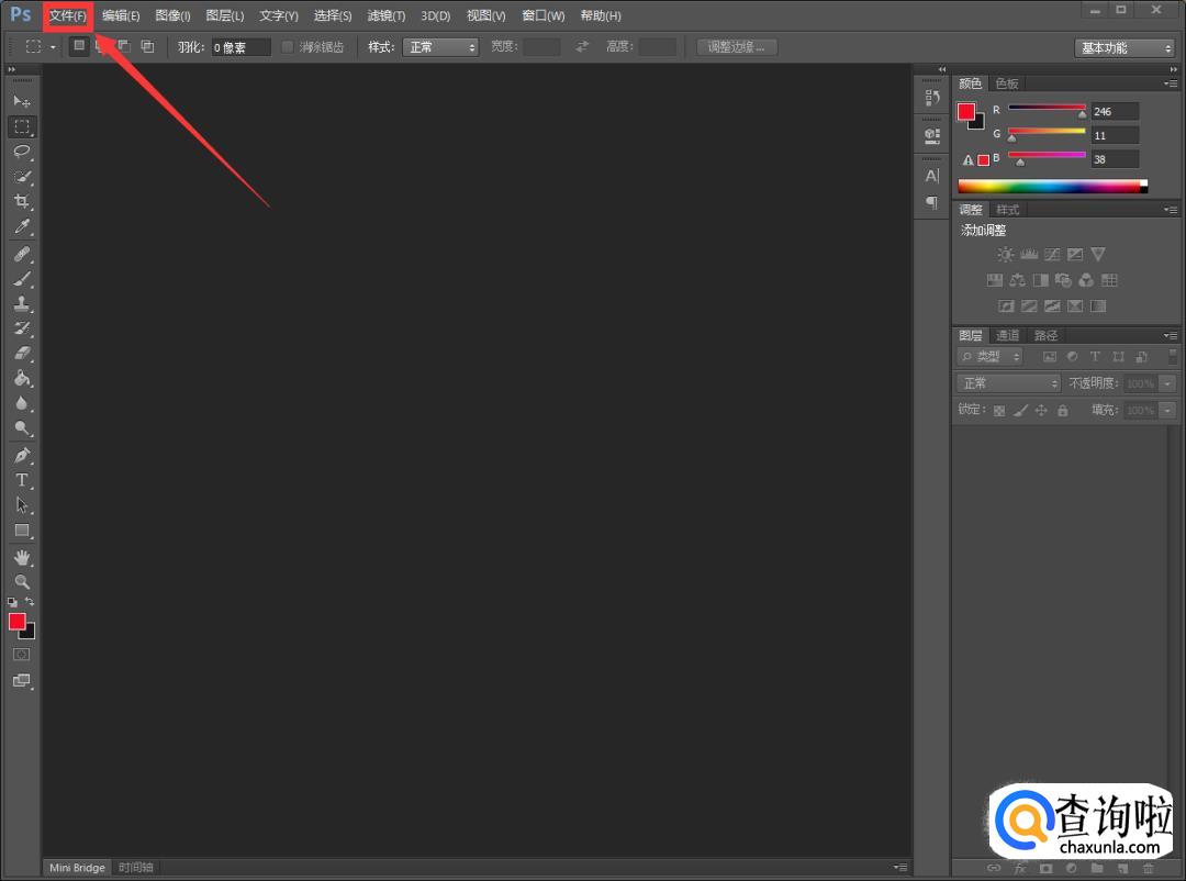 进入PS之后,我们点击左上角的【文件】。