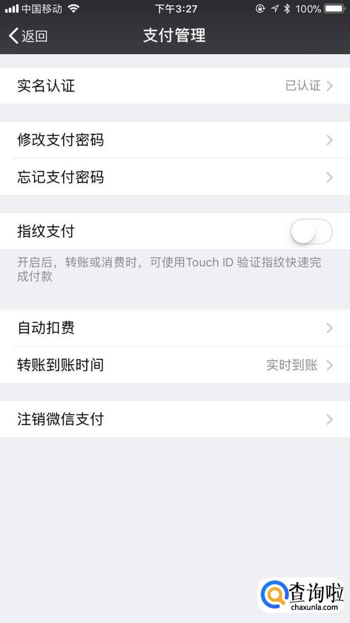 这样操作完成,我们就把微信指纹支付给关闭了。