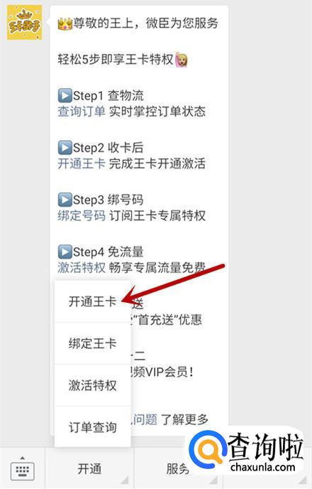 选择开通王卡。
