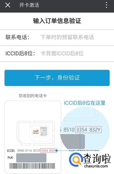 输入王卡信息开通。