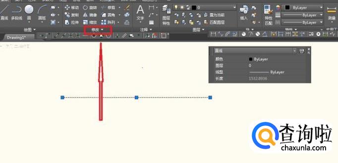 首先,打开CAD新建并画一条直线后找到修改命令;