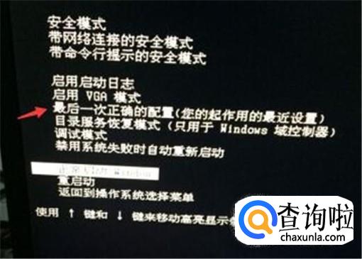 如果重启没用的话,我们将电脑关机,然后再开机,立马按下F8键,就会进入Windows 高级选项菜单,选择“最后一次正确的配置”。