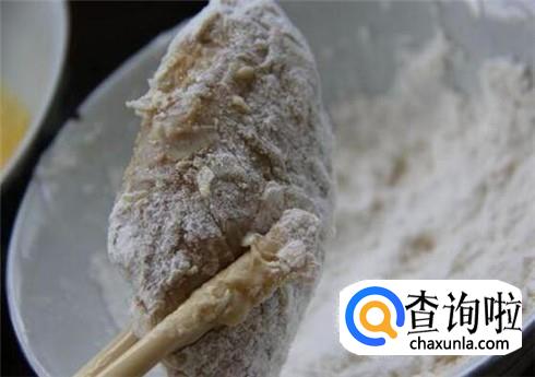 然后在把鸡翅中放入面粉中翻滚一圈,轻轻拍掉多余的面粉。