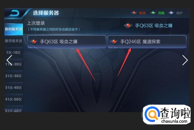 登陆进去后会显示推荐服务器,所推荐得服务器都为你所玩过得大区角色,这里你可以查看你在哪个大区