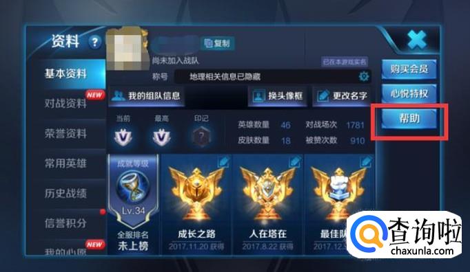 点进去后就弹出大区角色信息的界面,点击“帮助”。