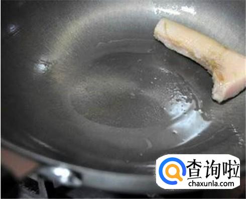 清洗干净锅之后,再次用一块猪油开始擦拭锅,一边小火加热一边擦拭,这样三次之后,生铁锅真的变成不粘锅啦。