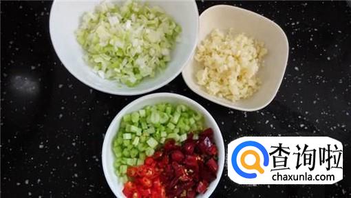 然后我们要将配料准备好,蒜香小鲍鱼的主要配料是大蒜,但是我们还要准备小米椒和小葱以及生姜,将其全部切碎备用。