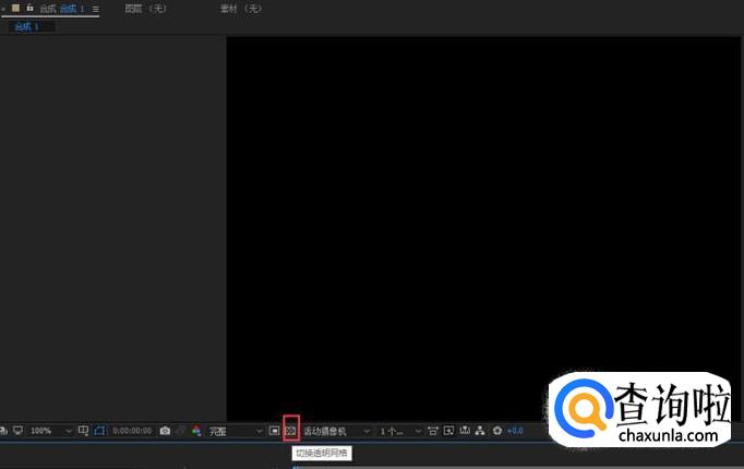 我们点击合成窗口下方的按钮,如图所示,这个按钮就是切换透明背景的按钮