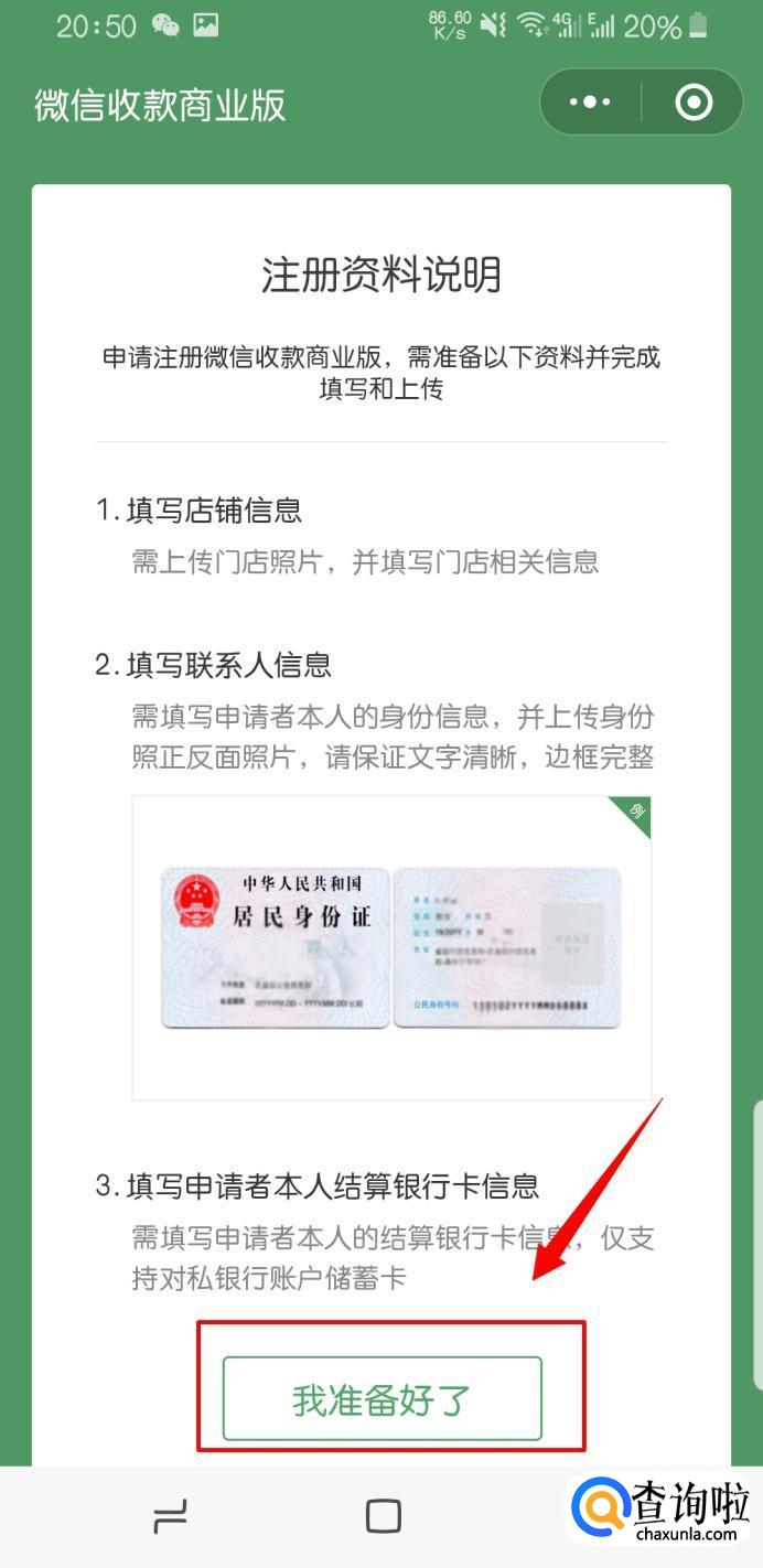 浏览完“注册资料说明”后,确认填写,点击“我准备好了”。