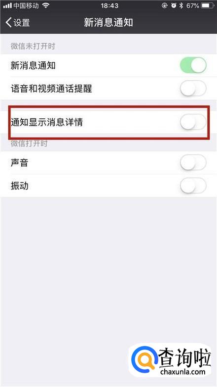 最后点击关闭通知显示消息详情开关就可以了,你学会了吗?赶快动手试一试吧。