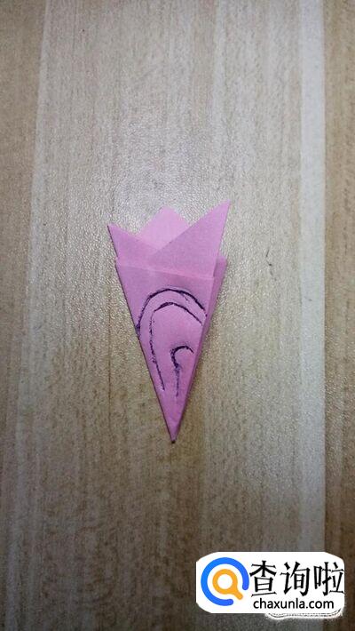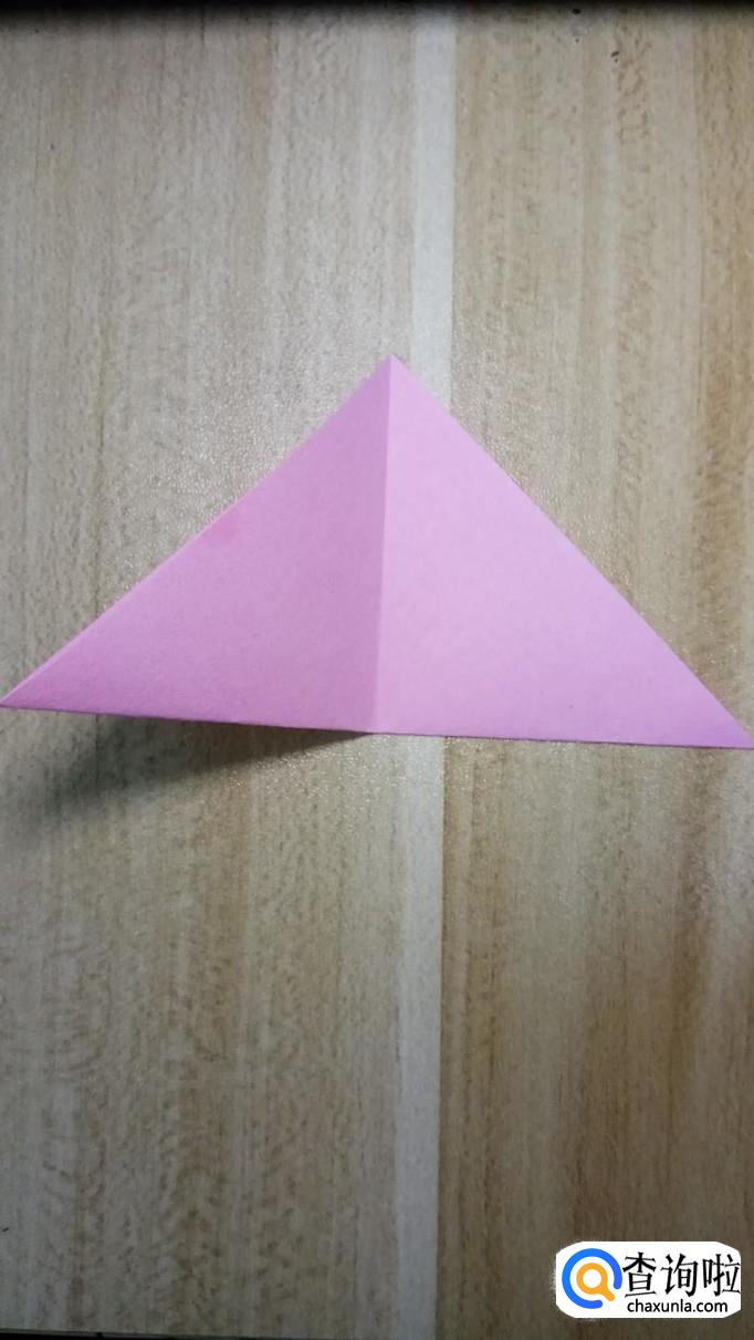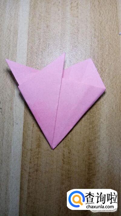 对照底边的中心,右角向左折叠,然后左侧的角再向右侧折叠,折叠出如图所示的形状。