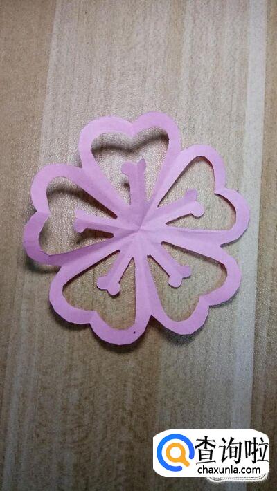 剪好之后,打开。爱心桃花就做好了,非常漂亮。