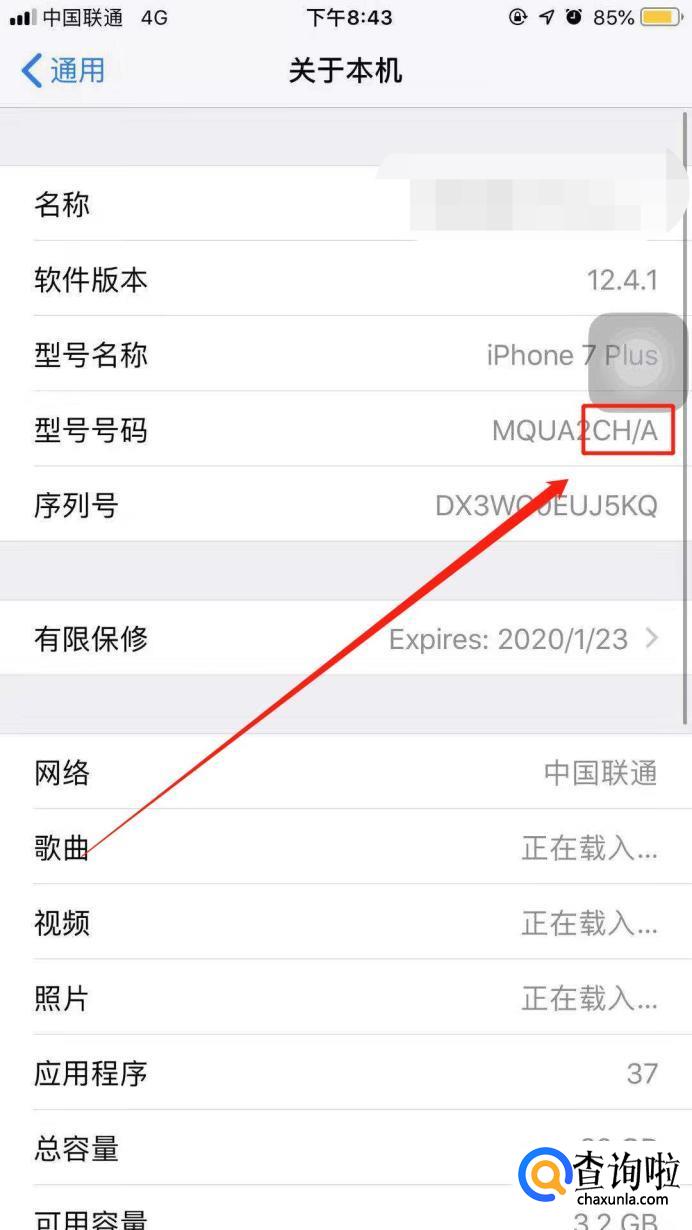 然后我们往下拉看到型号那一行,CH是国行,如果是ZP则是港版。