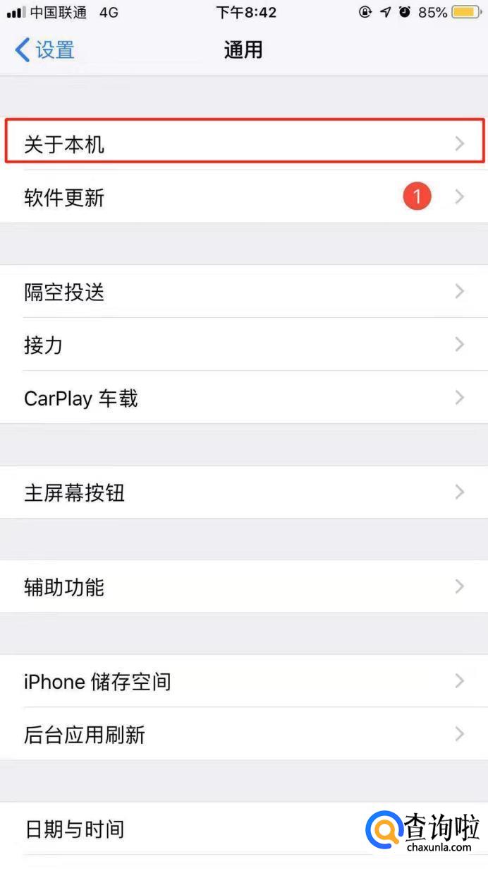 在“通用”页面里找到“关于本机”选项。