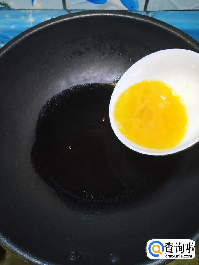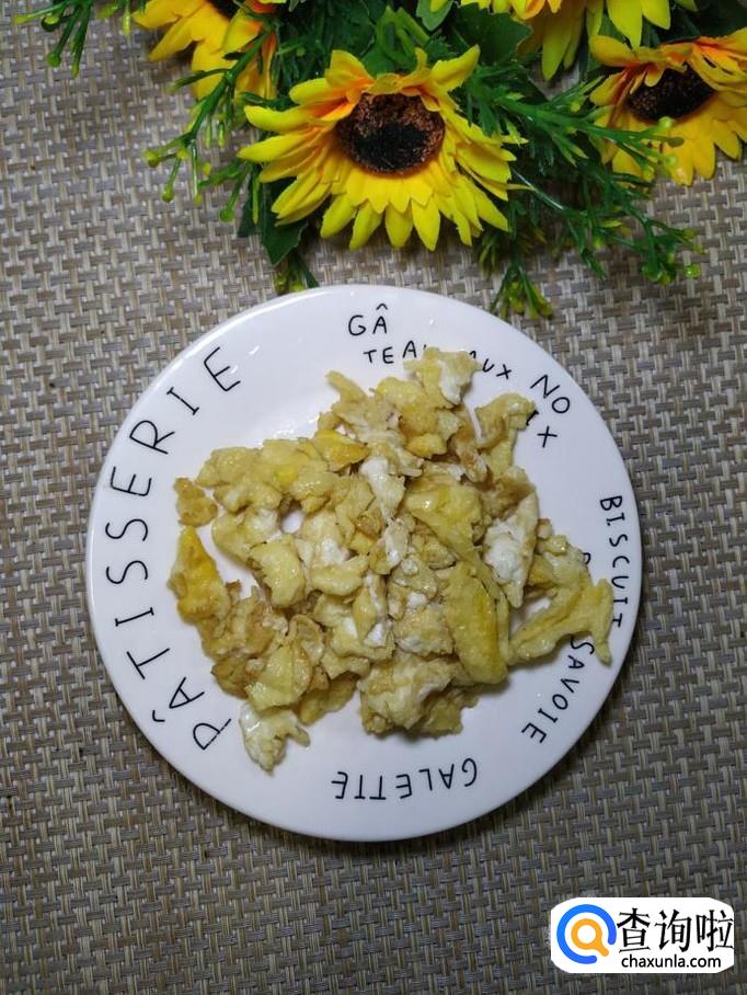 炒锅中放入适量油,油热后将鸡蛋液倒入锅中炒香,出锅装盘备用。