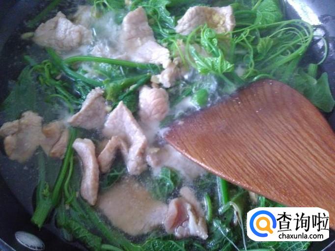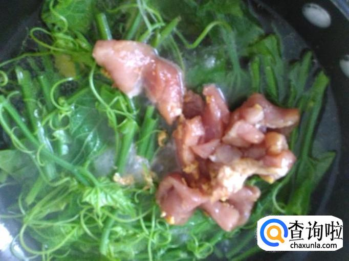首先把佛手瓜苗嫩梗嫩苗摘下来清洗干净,瘦肉准备好。