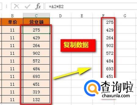 那么,就把C2:C11这区域单元格的数据复制出来了。