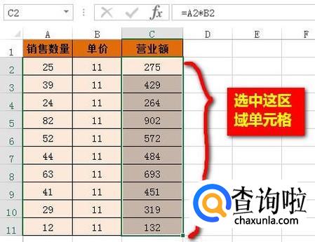 我们先把C2:C11这区域单元格选中。