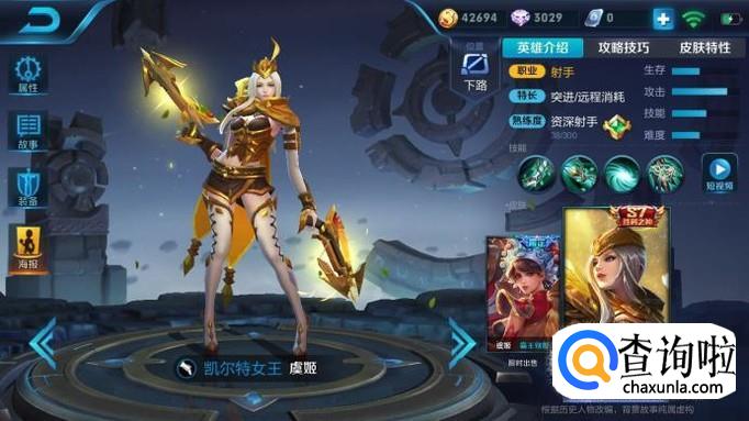 但是如果你没有英雄的话,皮肤是到手了,还是不能用的,必须要购买英雄才可以使用,这是金色皮肤系列最后的一个英雄了。S7很受欢迎的ADC虞姬。
