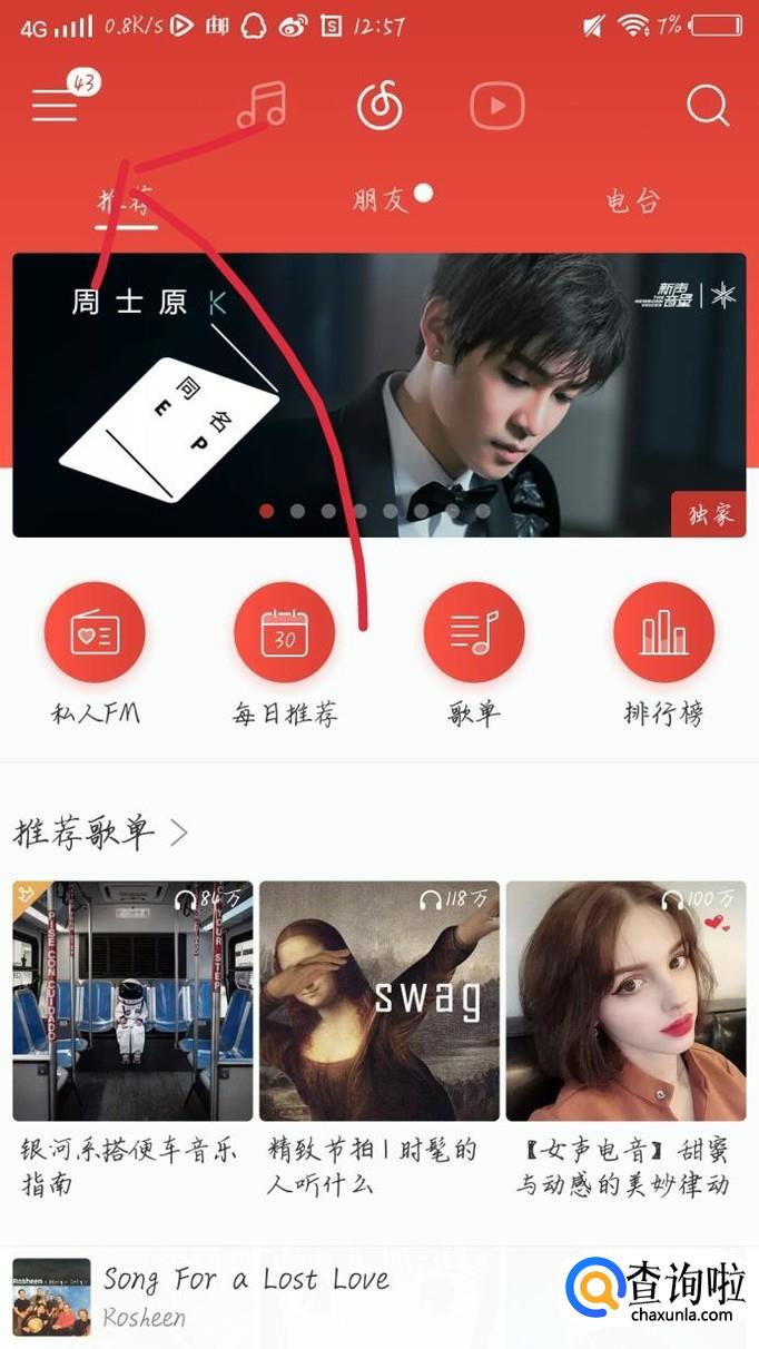 首先打开网易云音乐这个app,如图1所示。进入网易云app后会出现一个新的界面,如图2所示。