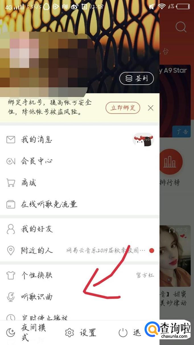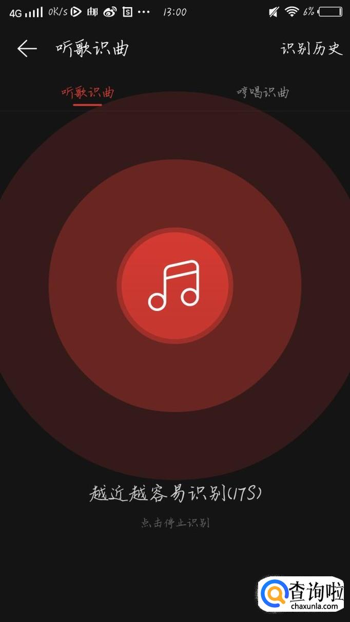 点击“听歌识曲”这个选项,如图1箭头所示。会出现一个新的界面,如图2所示。