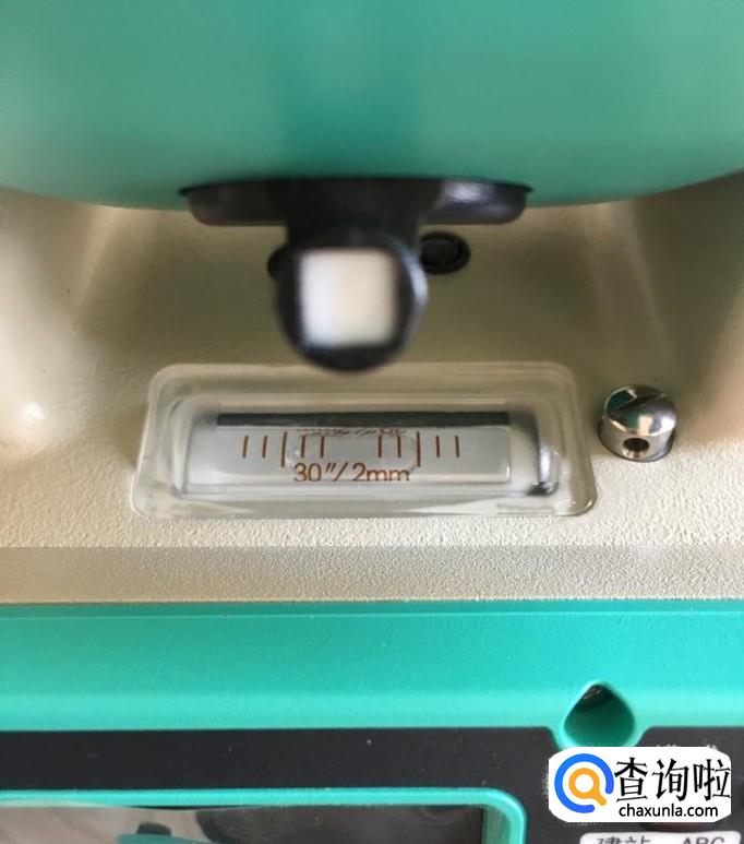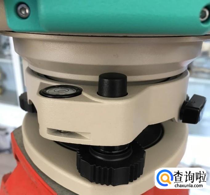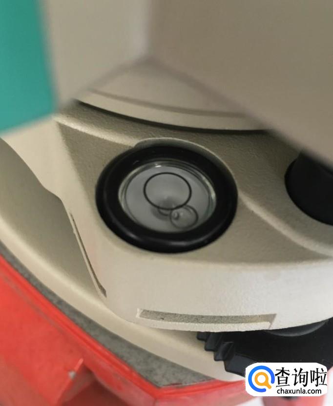 这时观察全站仪基座上的圆水准泡是偏离黑圈的,通过松、紧三脚架的三个紧固螺丝升起或者降低使圆水准泡居中,因为基座上的圆水准泡只是起到粗略整平的作用,只要圆水准泡进入到黑圆圈内即可。