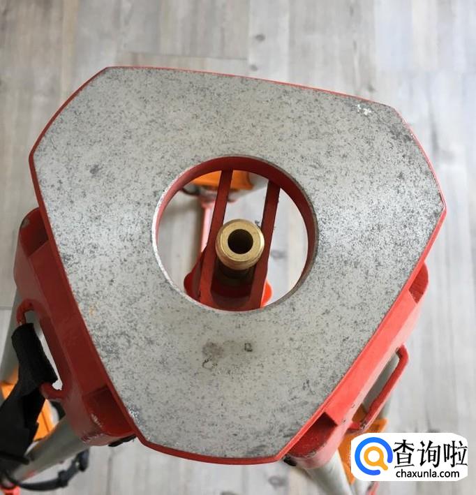 全站仪三脚架升至方便自己测量的高度(大约1.5米左右),紧固好三脚架的螺丝。把全站仪放在三脚架的平面上,旋转中心螺旋固定住全站仪。