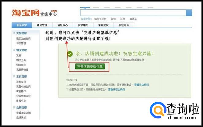 点击"同意"后店铺就创建成功了,您可以继续完善店铺的其他信息,如下图。