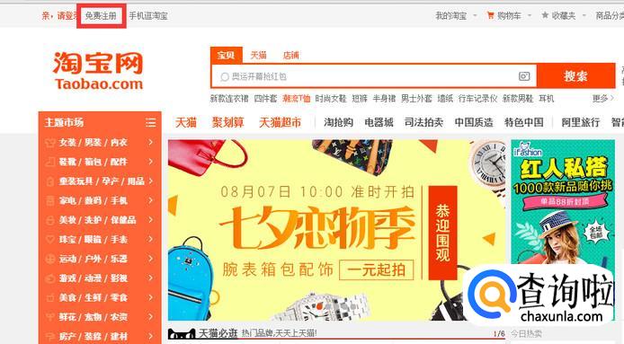 账户未登录情况下,点击淘宝网首页左上角【免费注册】根据页面提示操作。